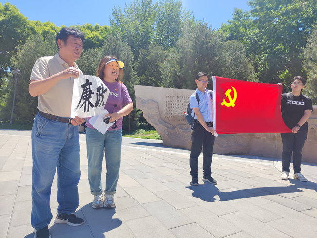 全体党员来到“第一党支部”雕塑时,熊慧军委员代表第三联合党委讲话。她表示:我们必须时刻保持清正廉洁的品行和高度的政治觉悟,把廉洁教育作为常态化、长效化的管理手段,引导党员干部做到党风廉洁、为民清廉,并将自己亲手书写的“廉政”赠予党委,与大家共勉。然后全体党员面对党旗重温入党誓词,铿锵有力的声音和神圣的誓词在耳畔回荡,强烈震撼着现场的每一名党员,提醒大家团结一致、奋勇争先。